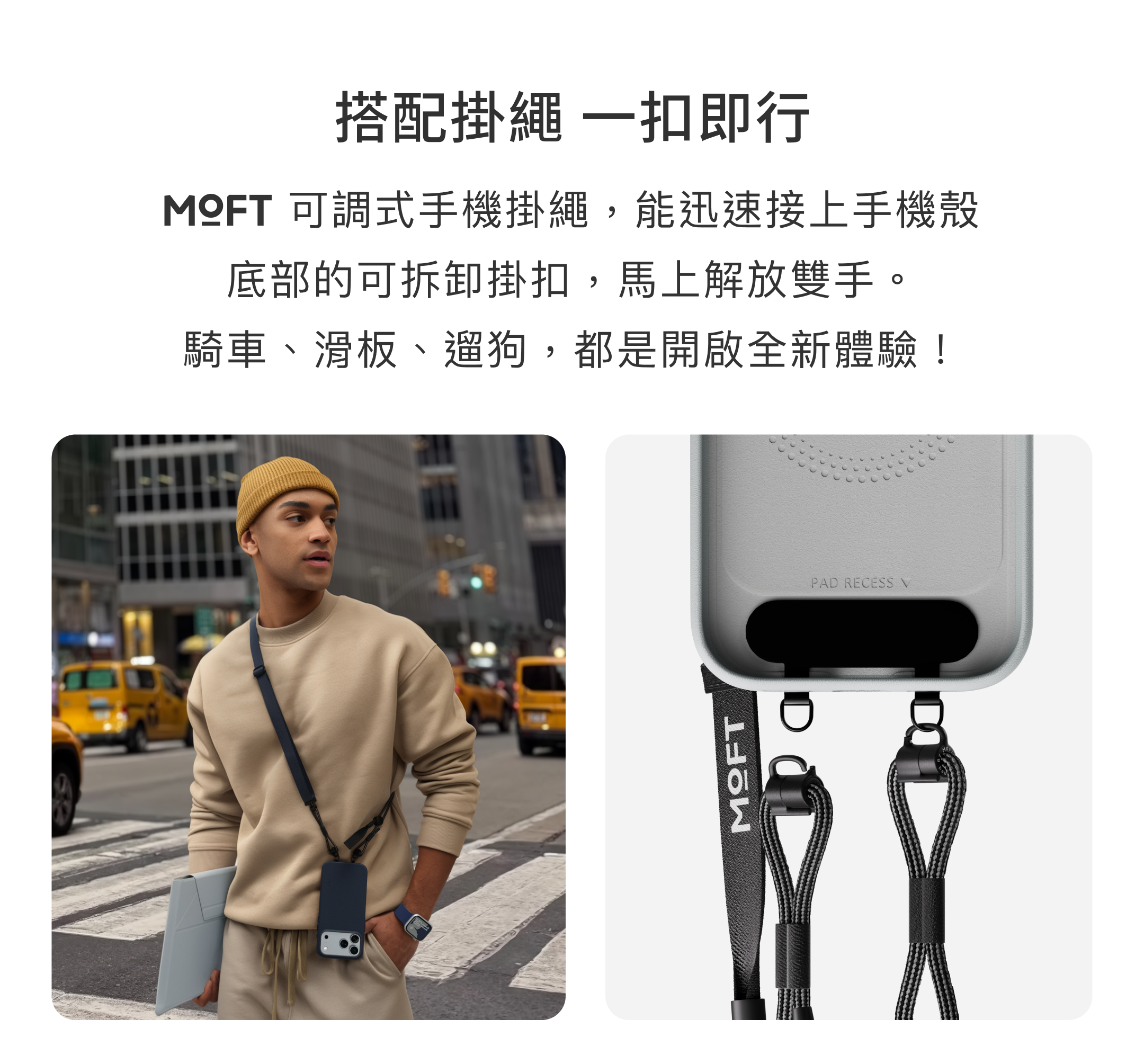 - 底部開孔設計,可用於 MOFT 手機掛繩(需另購)